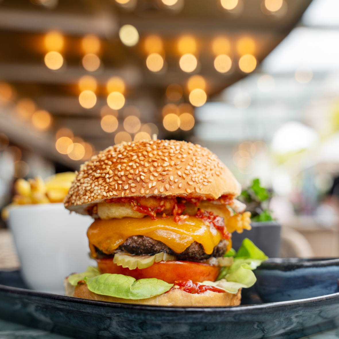 LE Drugstore Cheeseburger, French fries and mesclun salad, with or without bacon