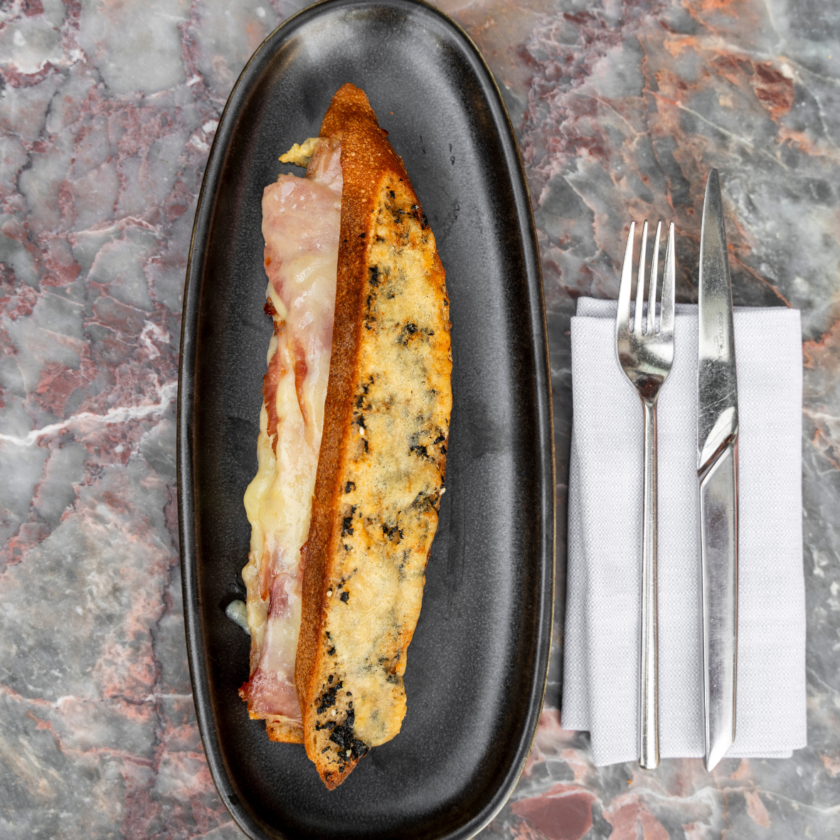 LE Drugstore croque-monsieur, truffle butter, Prince de Paris ham, Beaufort cheese