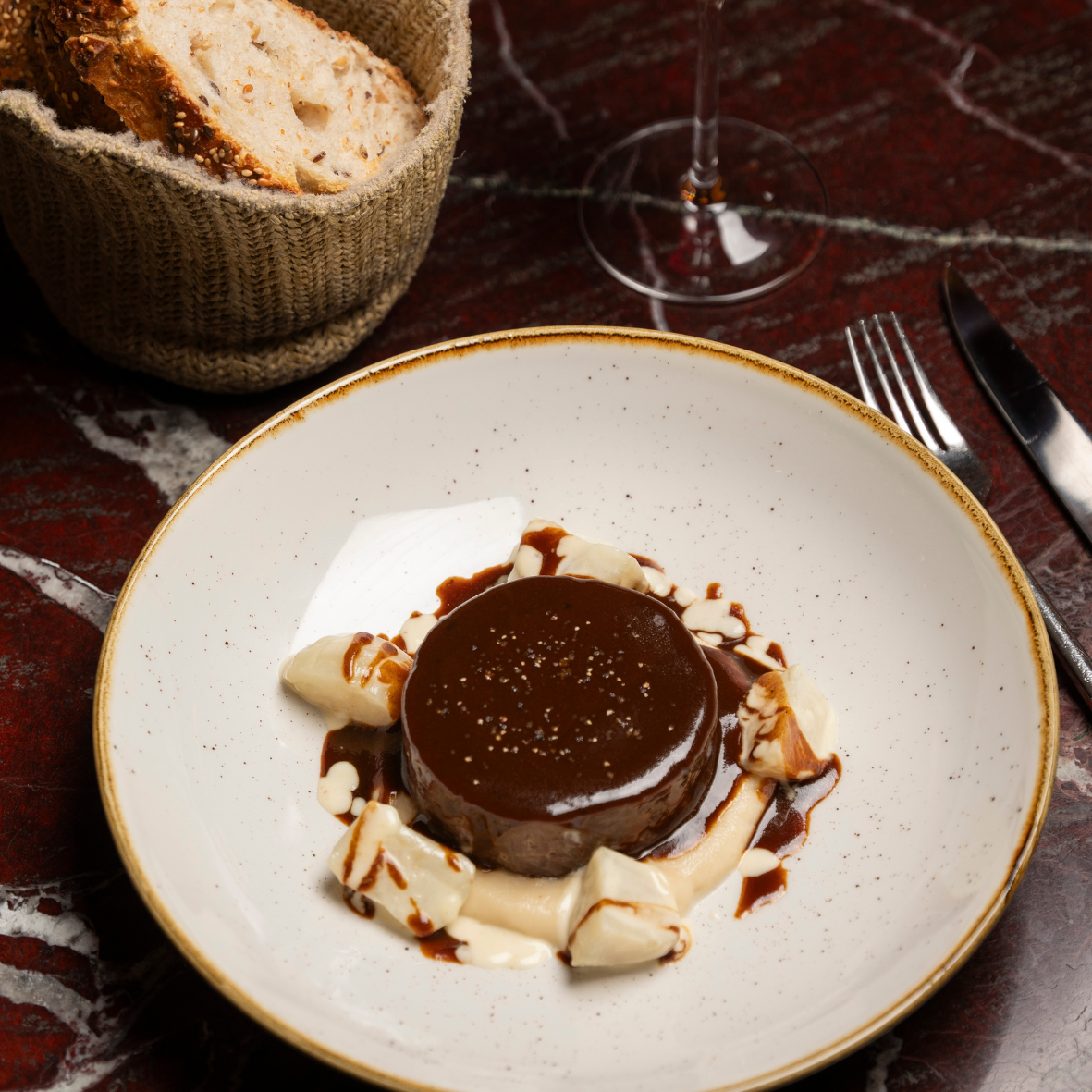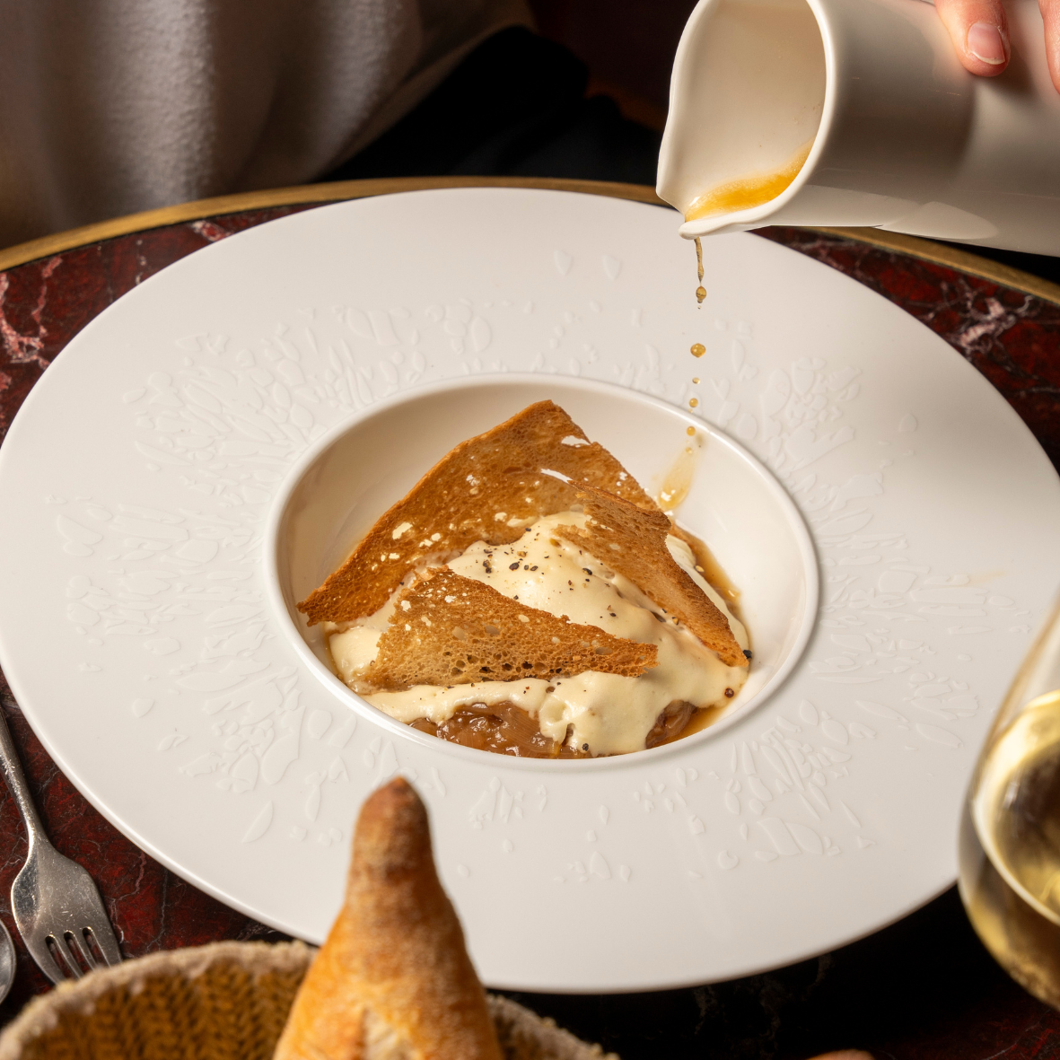 Miso-braised beef cheek, Jerusalem artichoke refreshed with horseradish